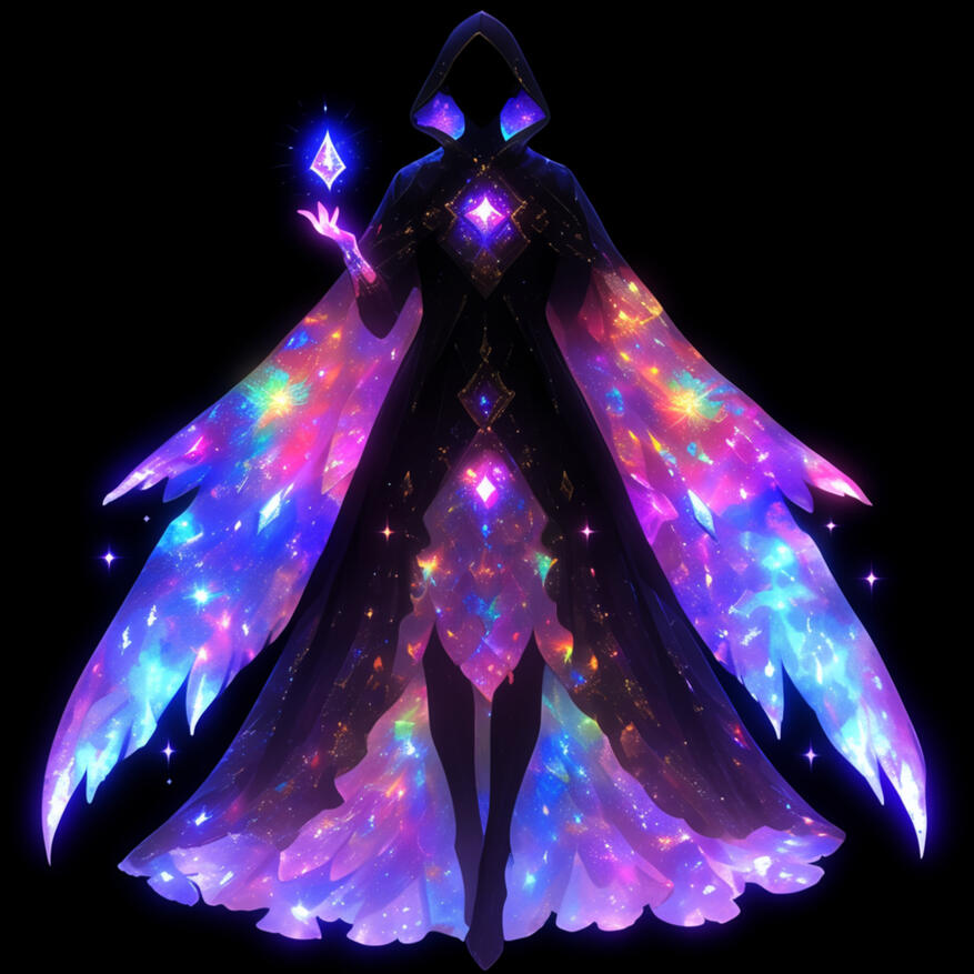 + Form: Luminae is often depicted as a radiant, androgynous figure composed entirely of light. Their "body" shifts between crystalline forms and refracted colors, embodying the essence of every gemstone. Their eyes are said to shine like twin galaxies, seeing all possibilities and guiding the realm toward its brightest path.